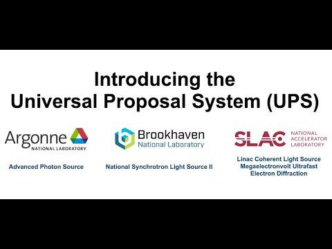 The Universal Proposal System (UPS) is a collaboration between the Advanced Photon Source (APS) at Argonne National Laboratory, the National Synchrotron Light Source II (NSLS-II) at Brookhaven National Laboratory, and the Linac Coherent Lightsource (LCLS) at SLAC National Accelerator Laboratory
